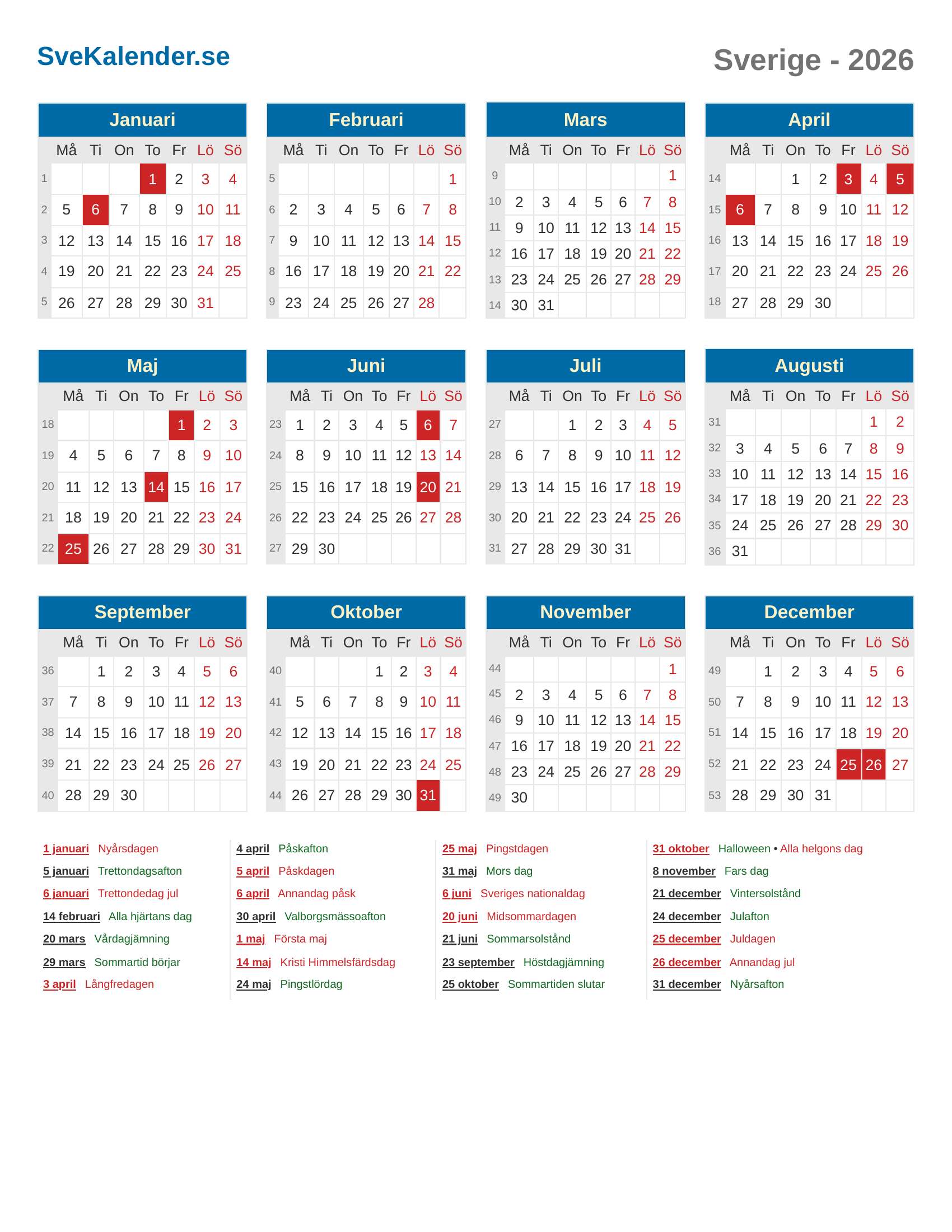 Kalender 2026 Sverige