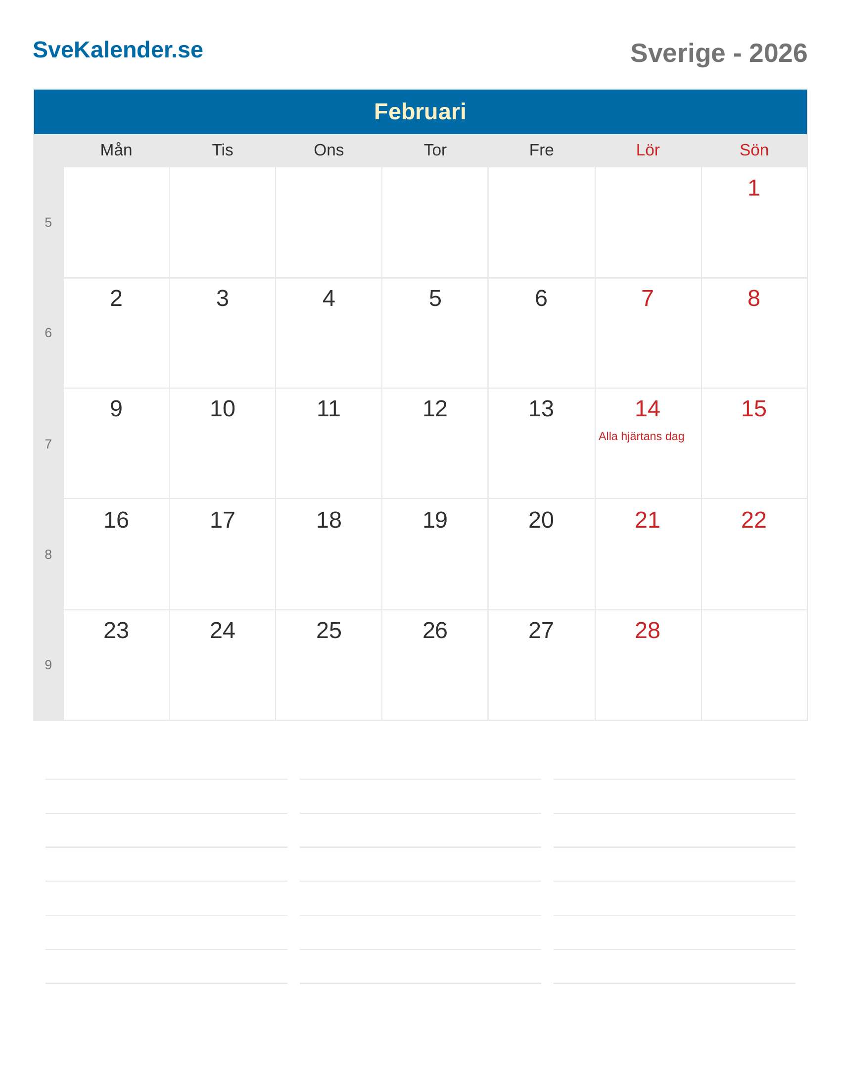 Kalender 2026 Sverige - Februari