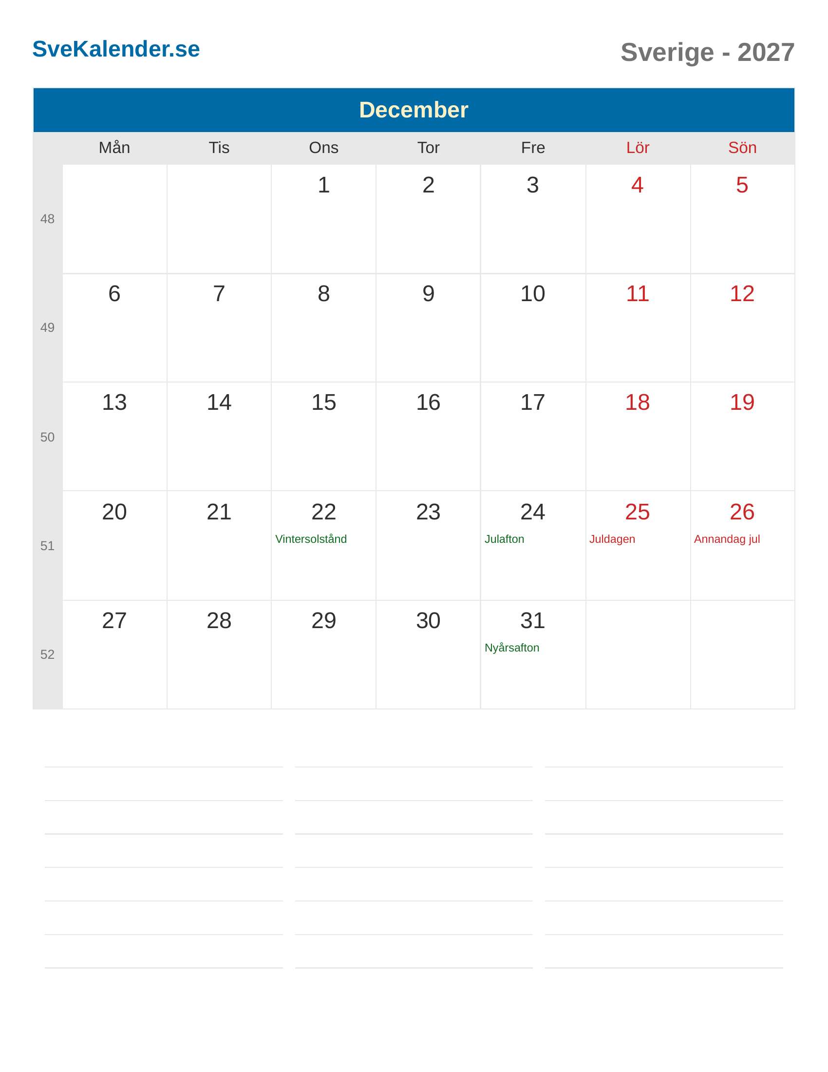 Kalender 2027 Sverige - December